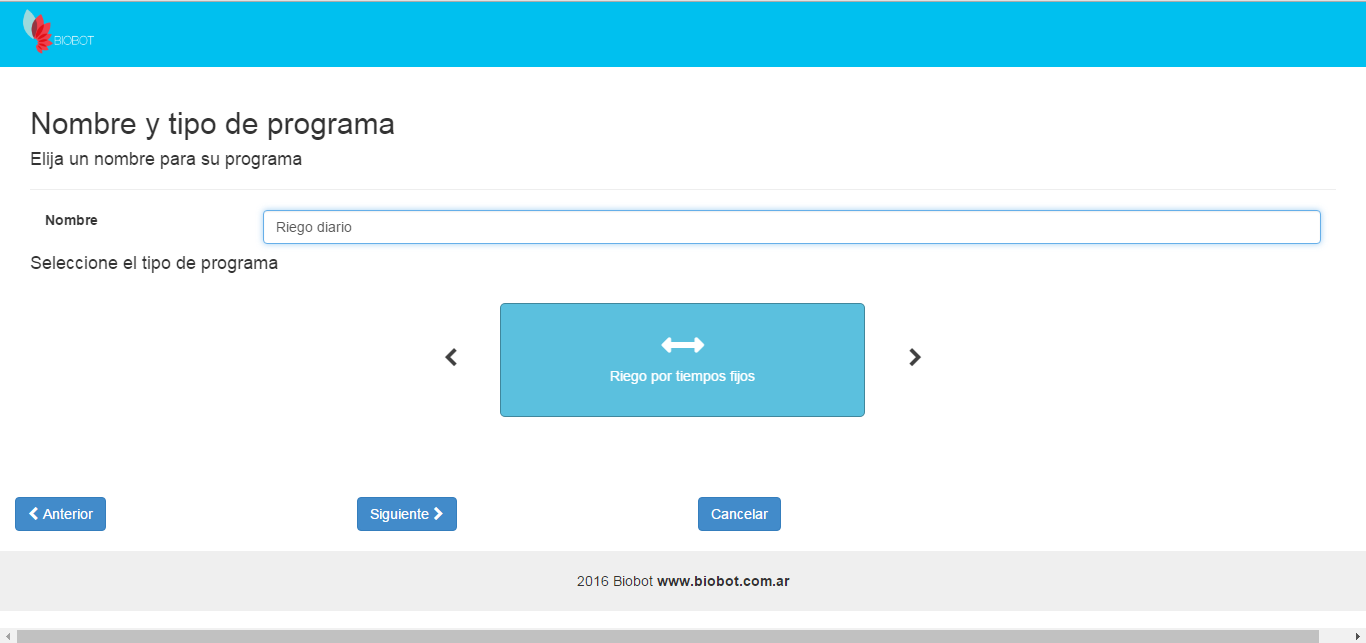Es recomendable que el nombre del programa esté asociado con el tipo de función que hace. Por ejemplo: Riego diurno, Riego Lote A, etc.