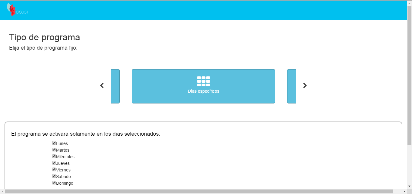 • Días específicos: el programa se activará sólo los días de la semana elegidos.
