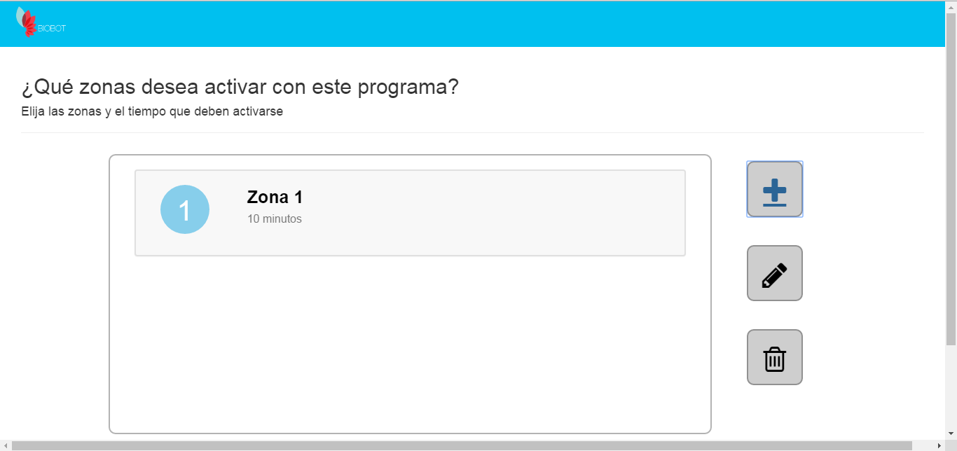 Con el botón es posible borrar una zona. El botón permite modificar una zona de riego asignada.