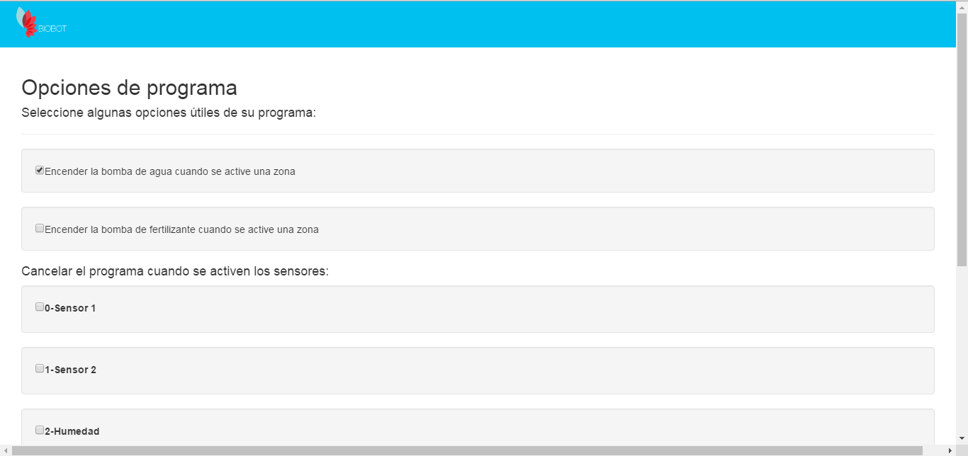 El programa se cancelará cuando al menos uno de los sensores seleccionados se activen.