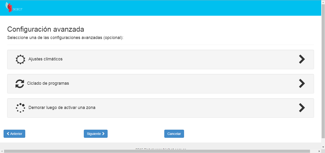 El asistente de programas es una herramienta simple y eficiente para configurar la activación automática del riego en pocos pasos. Las opciones del asistente disponibles son: